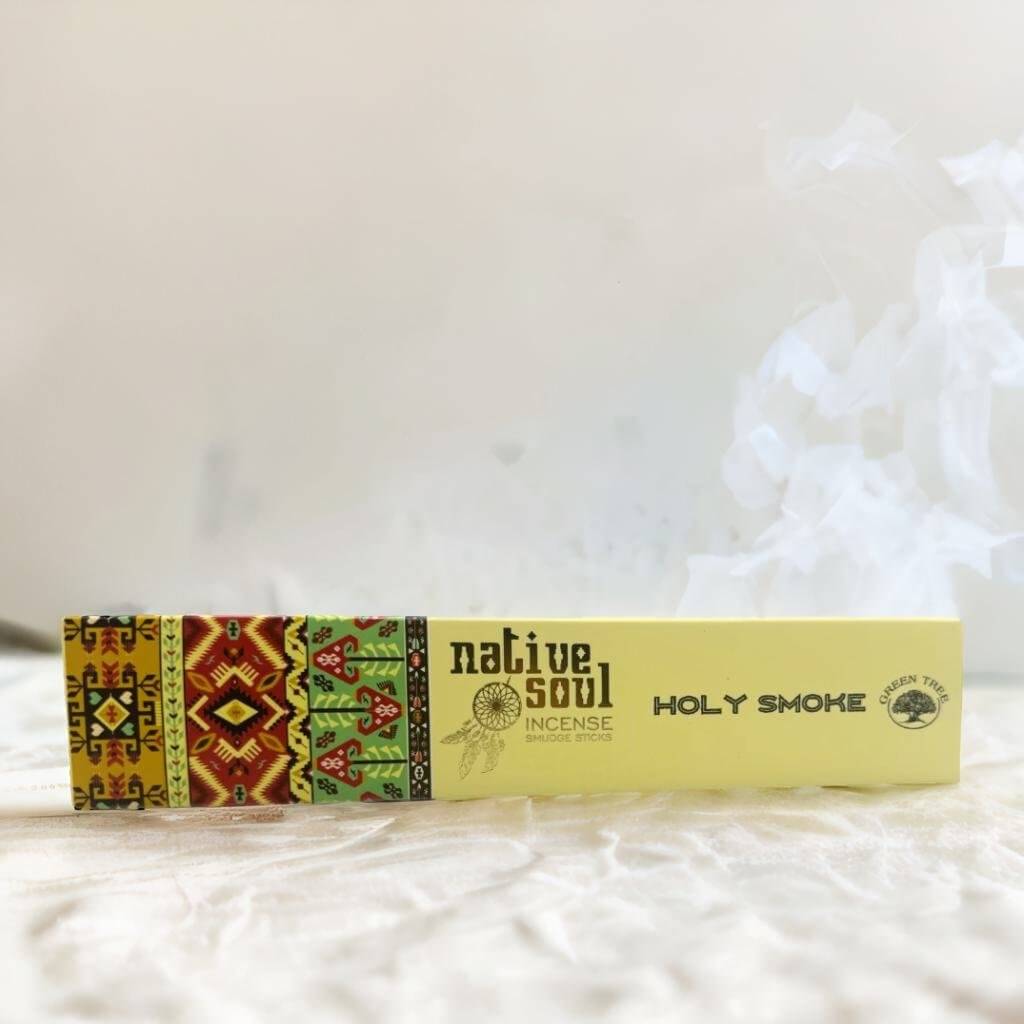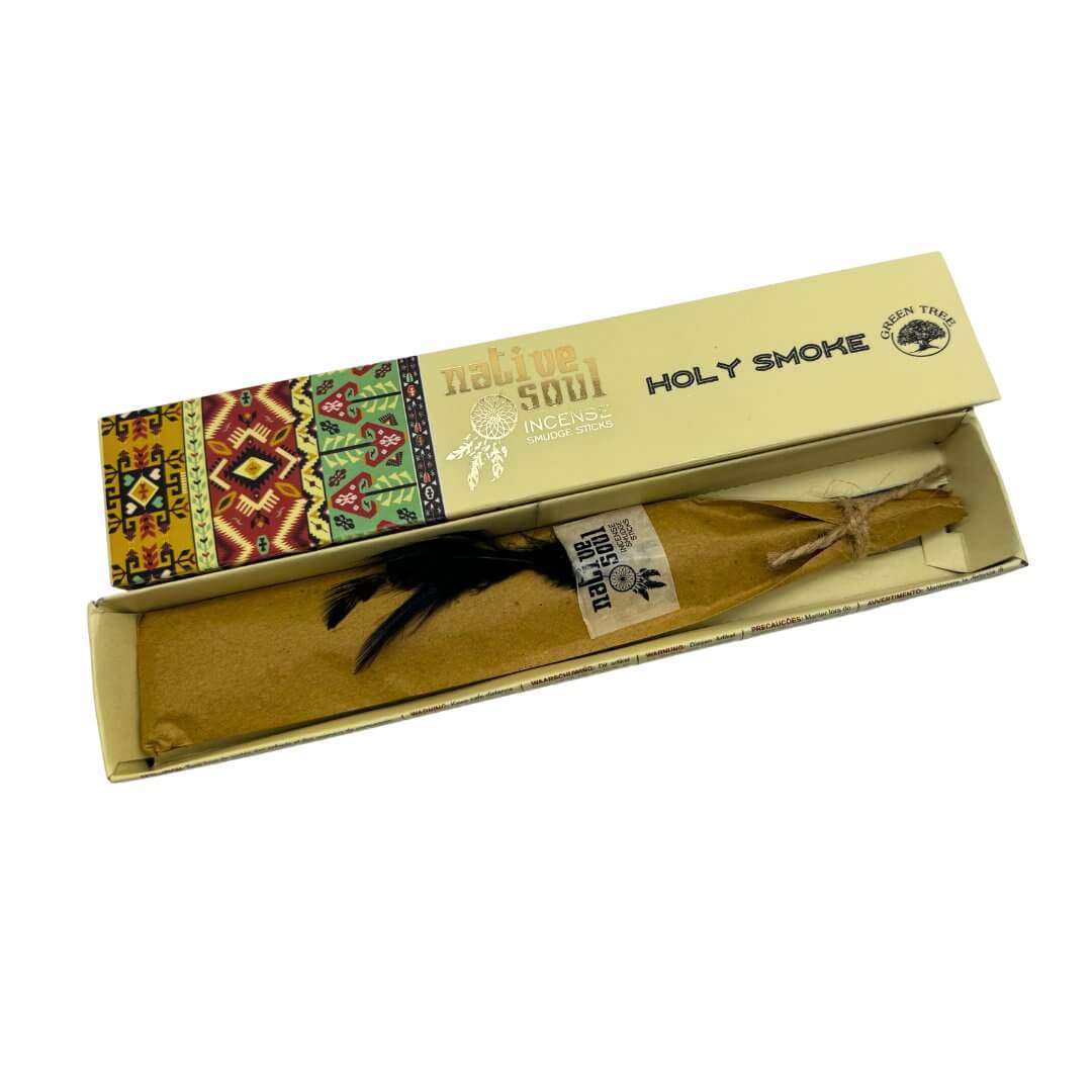 Create a cozy, campfire-like atmosphere with Native Soul’s Holy Smoke Incense. Blended to perfection, this incense evokes the beauty of the wilderness. Packaged in a stunning box with a Native American print and delicate feather, it’s the perfect addition to any space.