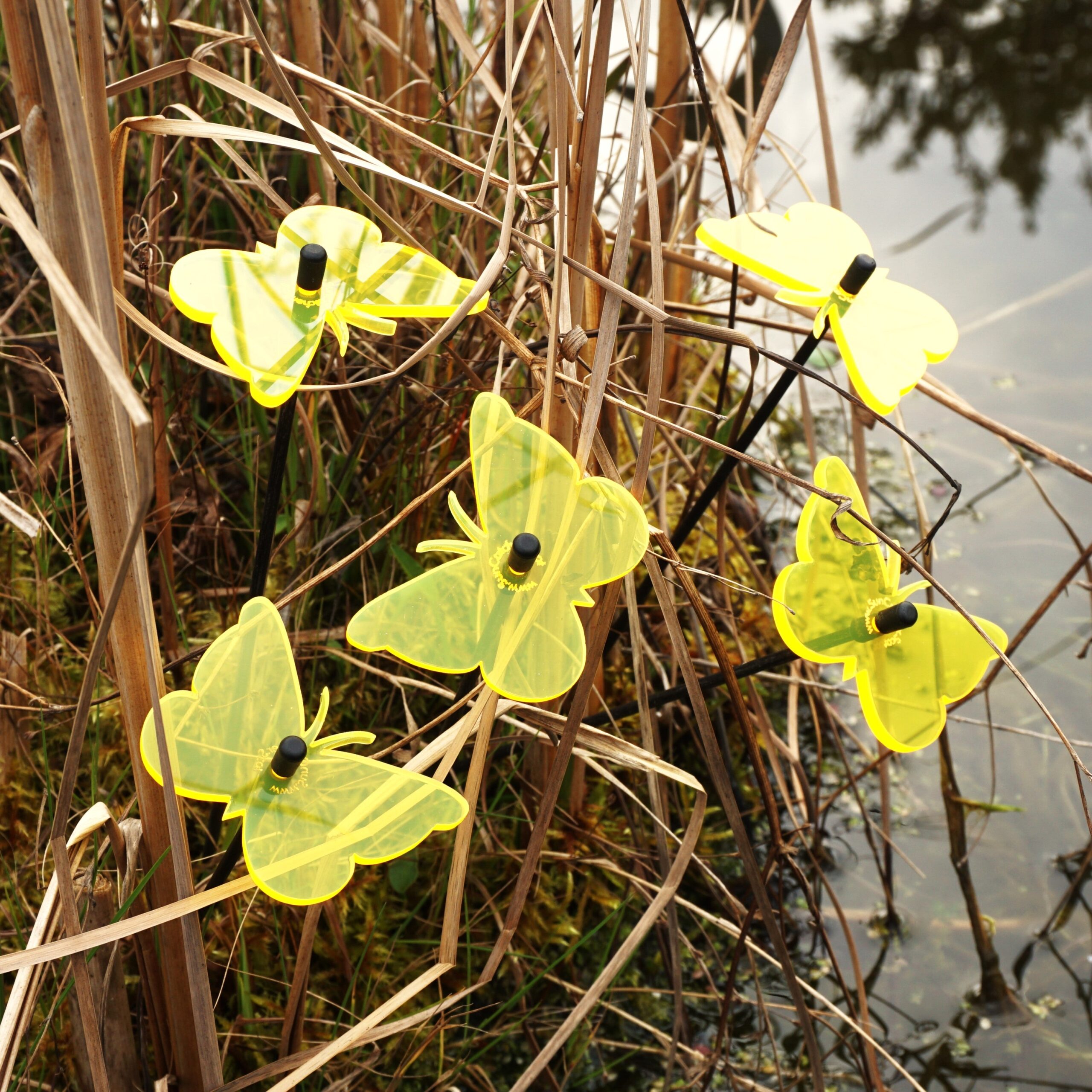 SunCatcher’s lovely little Gatekeeper Butterflies create magical reflections around your chosen indoor or outdoor space when the sun is shining and glow from first light to the end of the day, even when the sun is away.