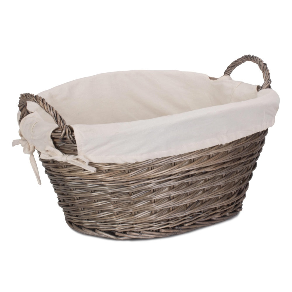 Small Wicker Laundry Wash Basket with White Lining