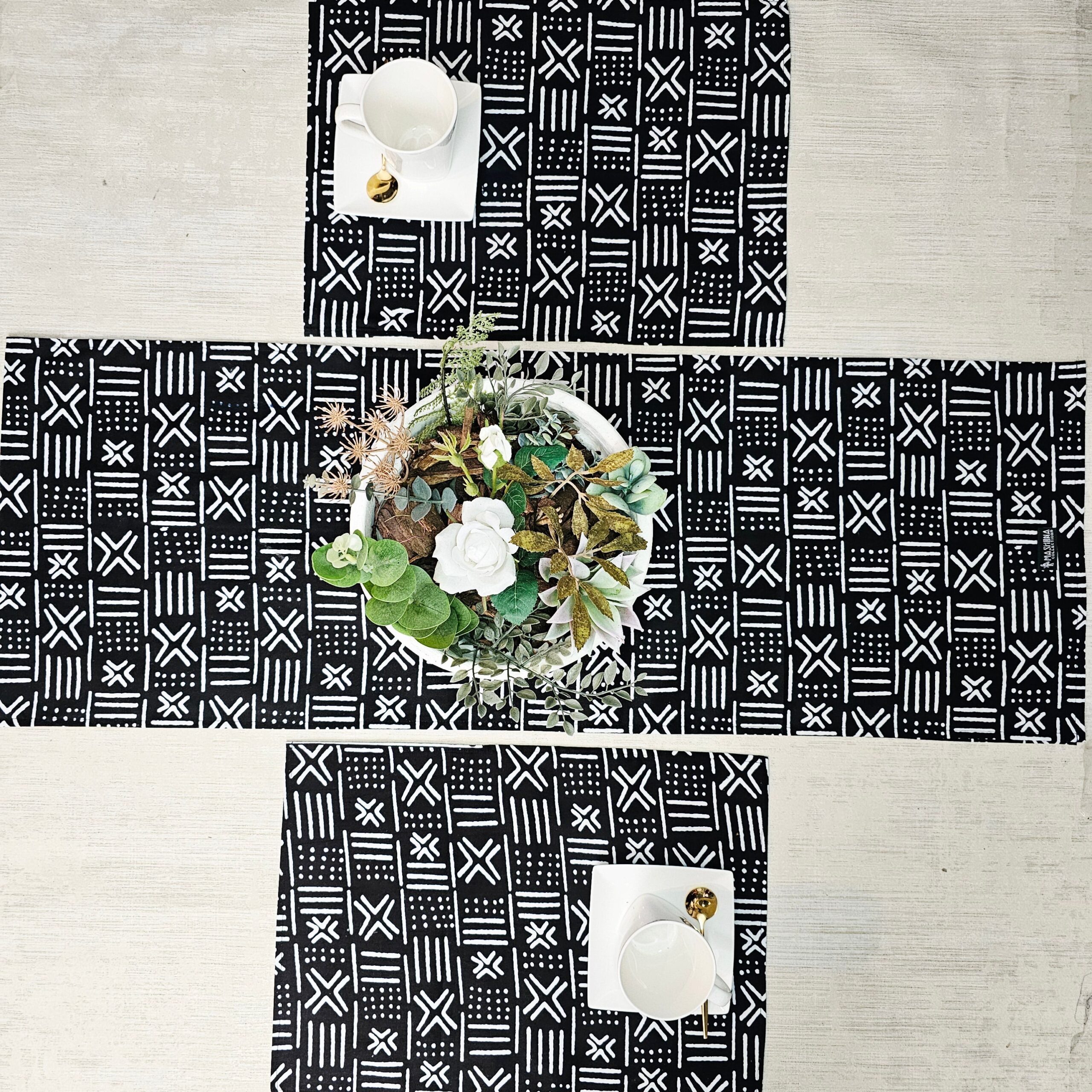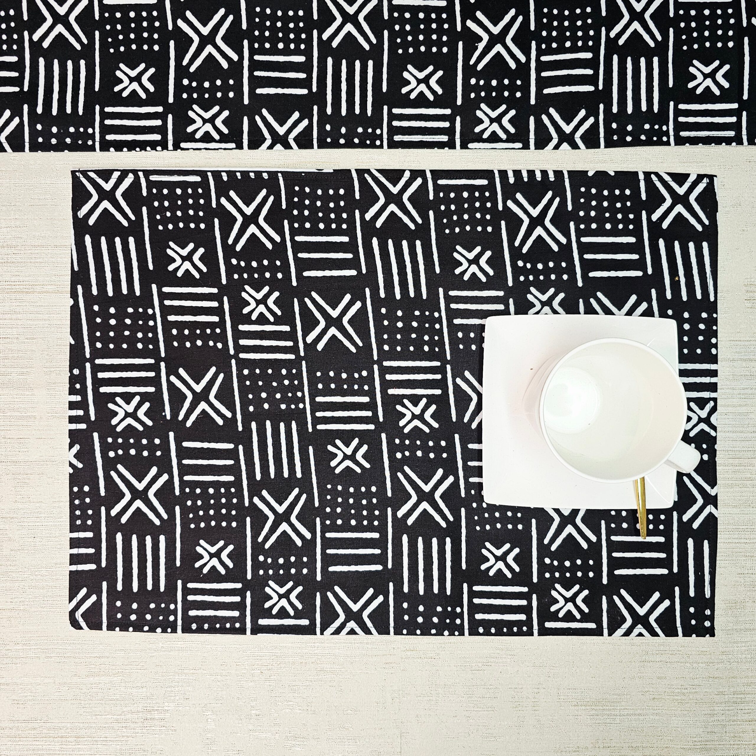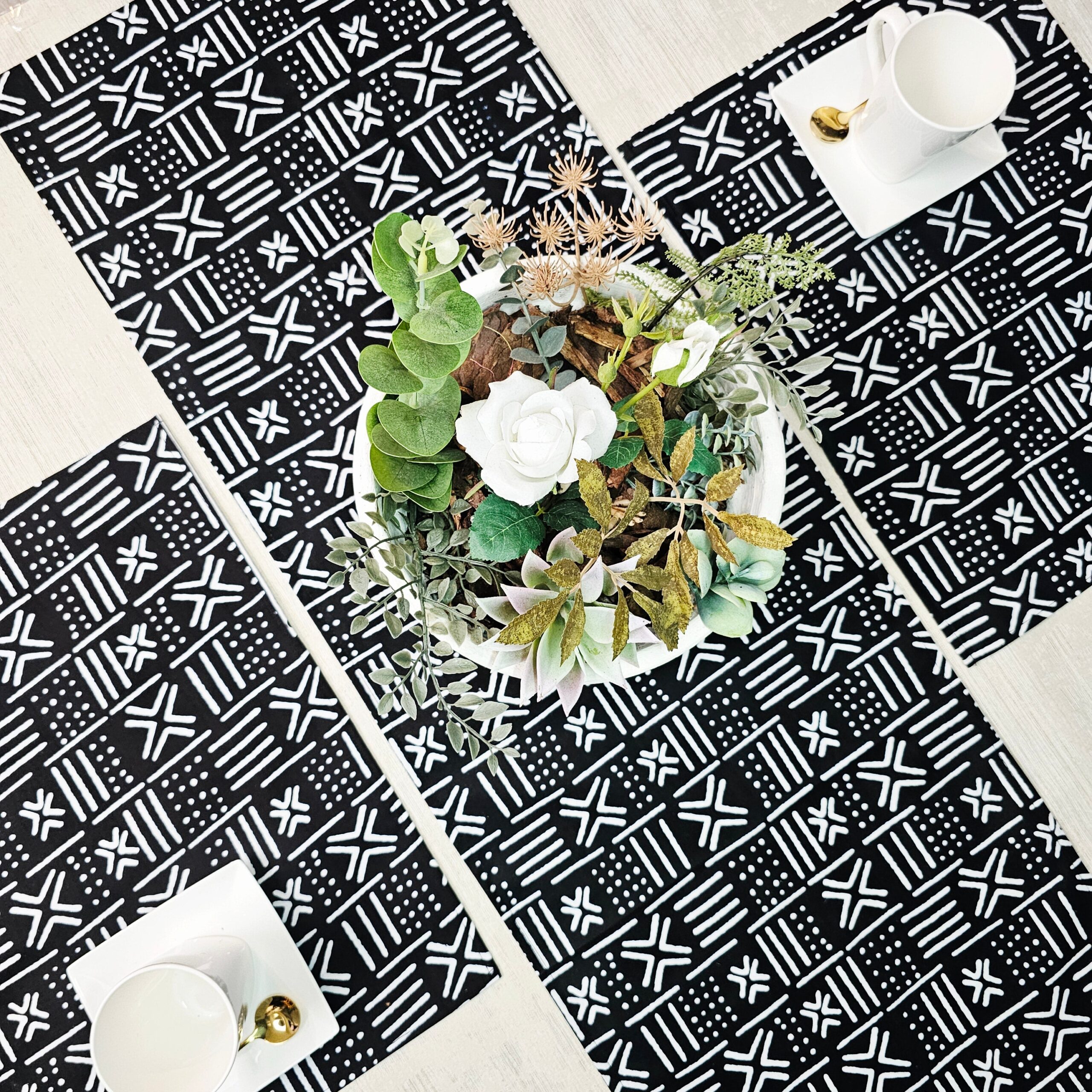 Table Runner and Set of 4 Placemats | 100% Cotton African Print Fabric