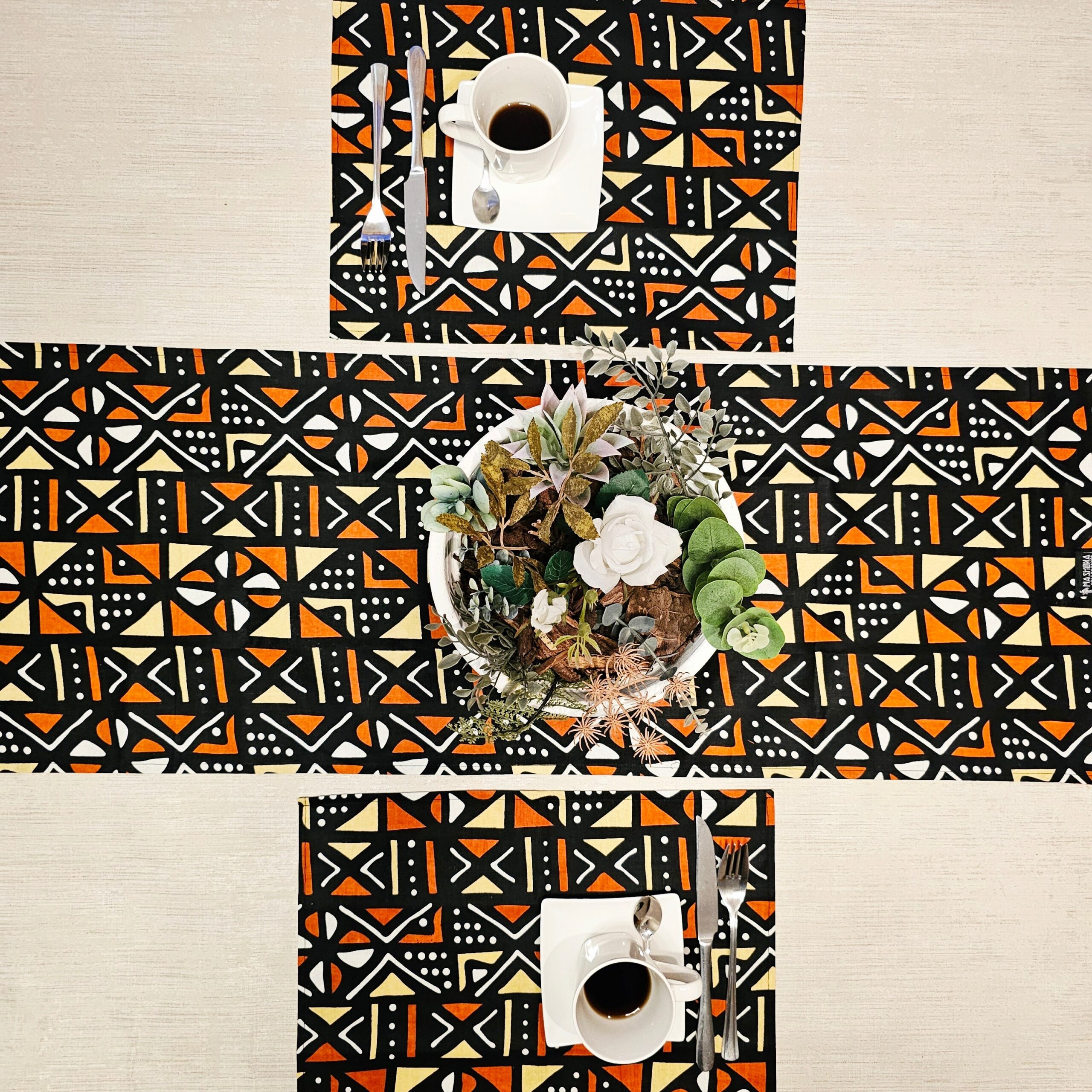 Table Runner and Set of 4 Placemats | 100% Cotton African Print Fabric