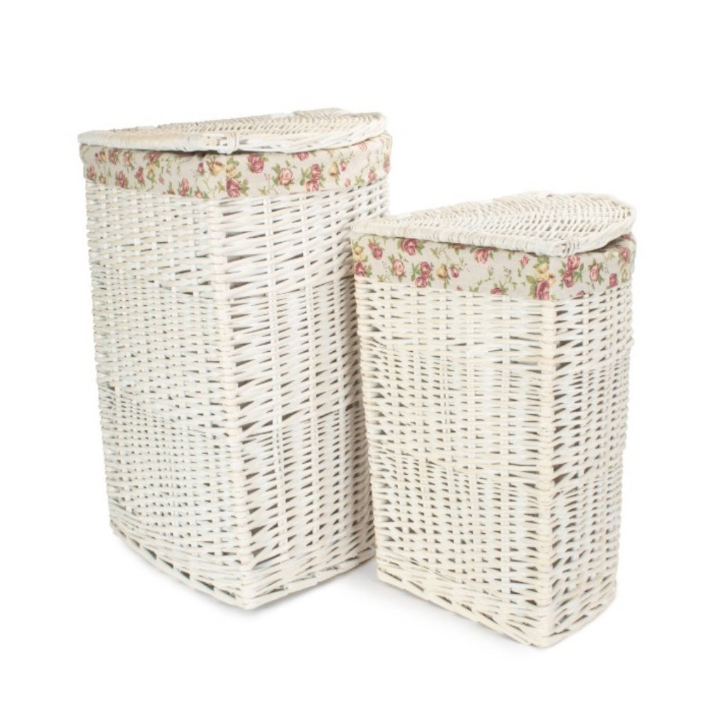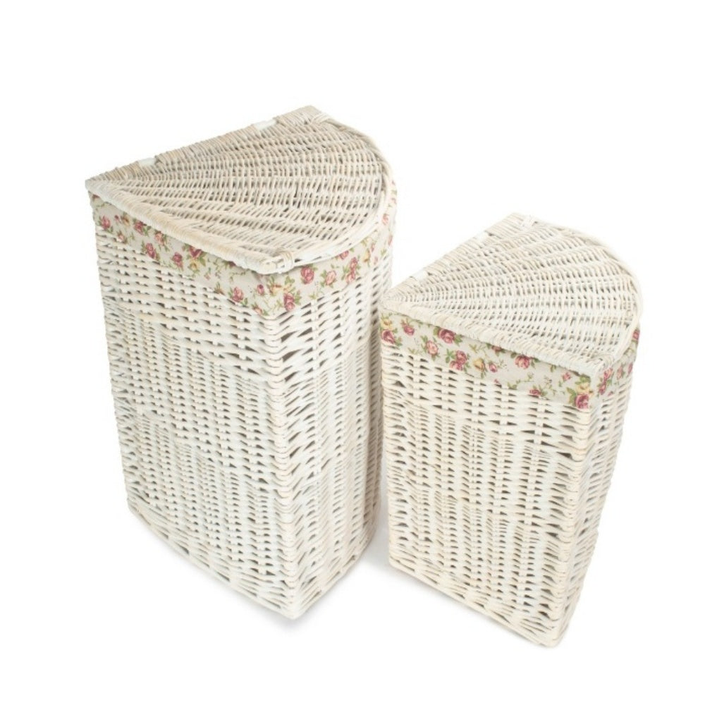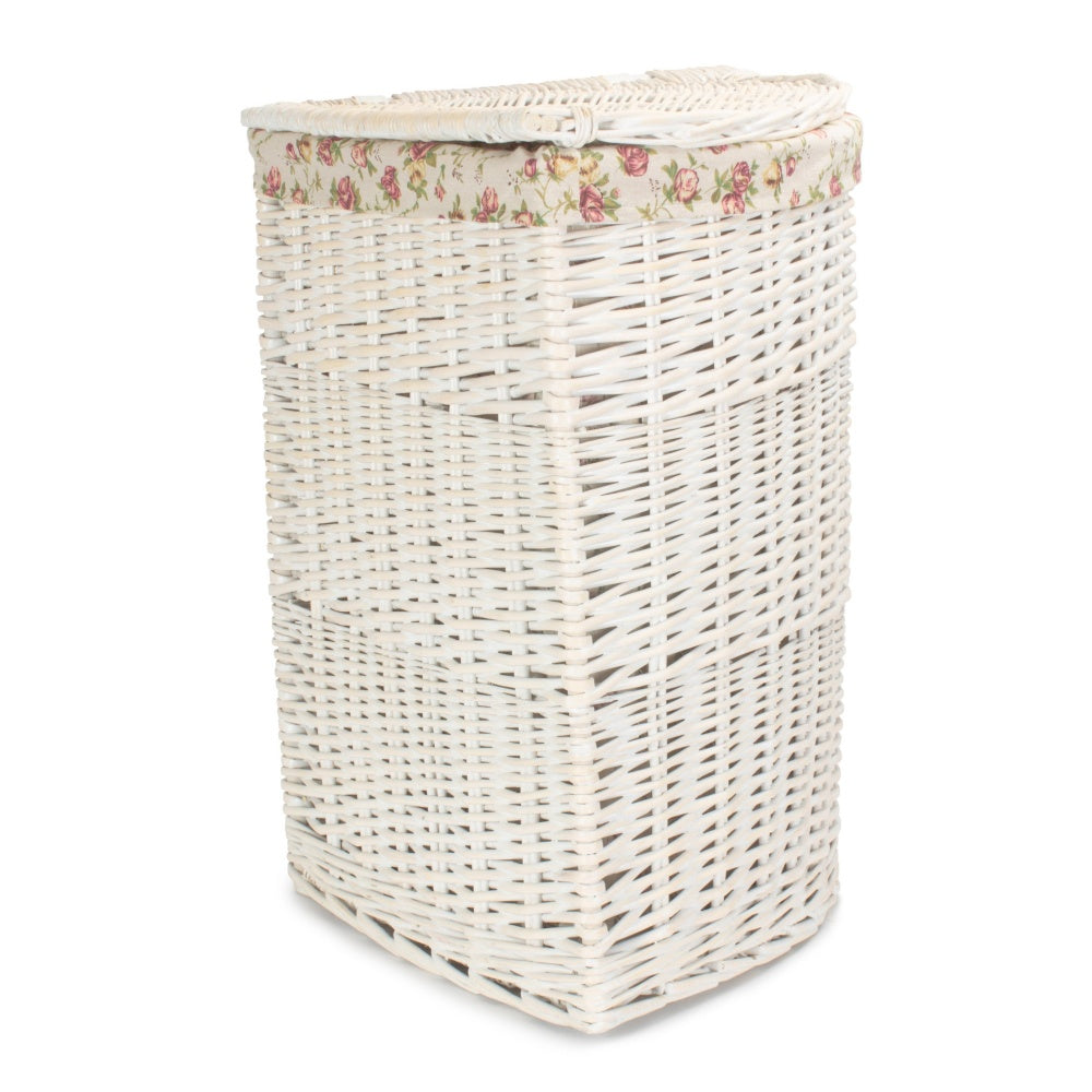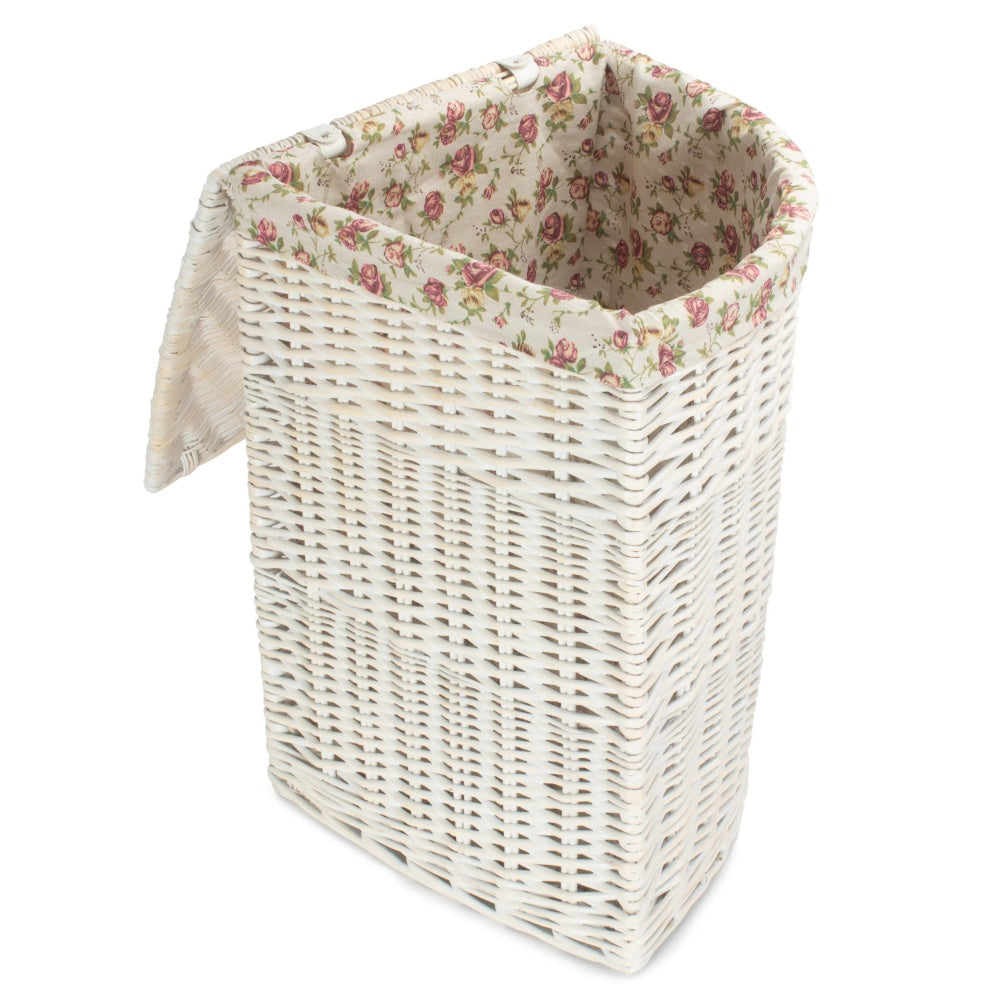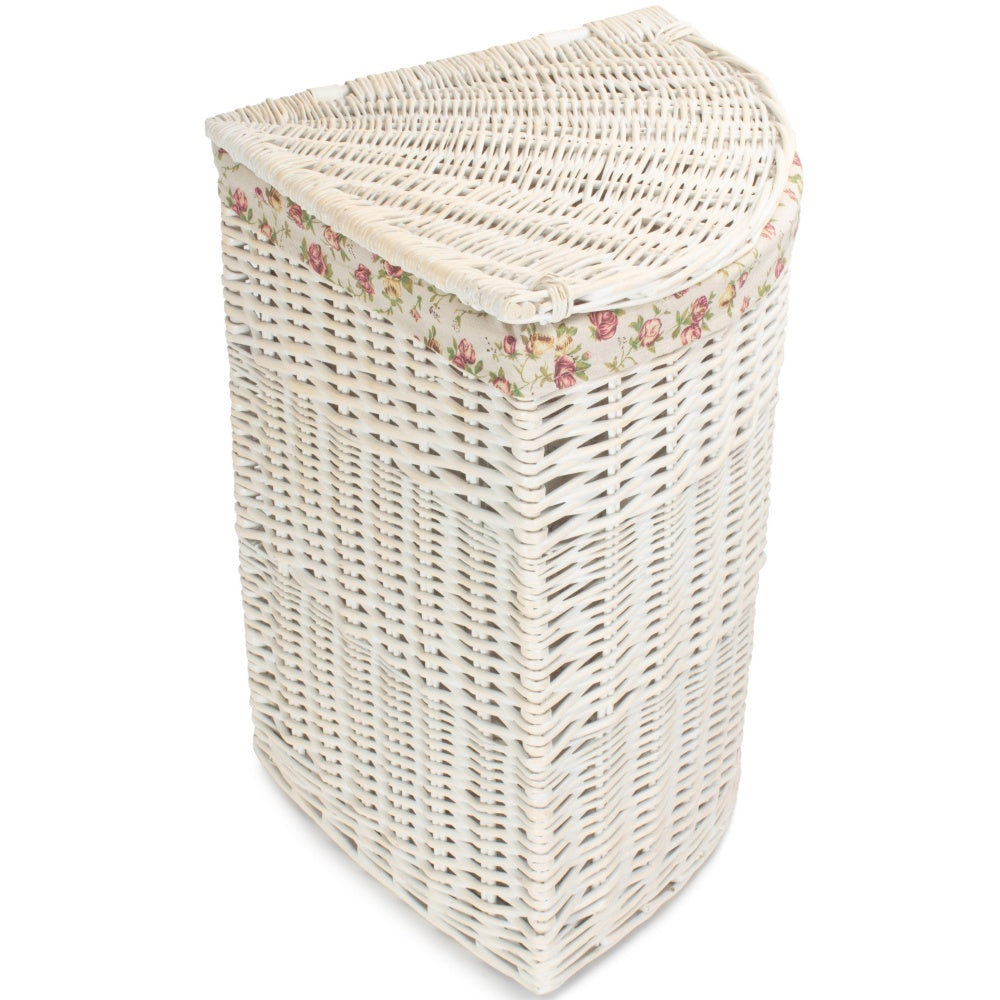 Elevate your laundry room with our White Wash Corner Wicker Laundry Basket with Lining.